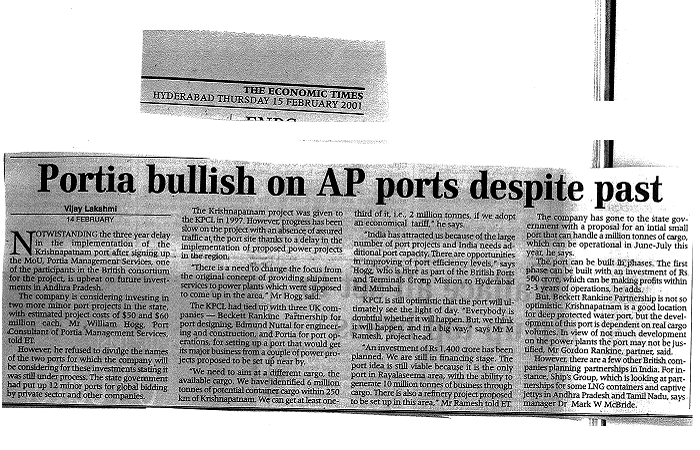Notwithstanding the three year delay in the implementation of the Krishnapatnam Port after signing on the MoU, Portia Management Services, one of the participants in the British Consortium for the project, is upbeat on the future investment in Andhra Pradesh.